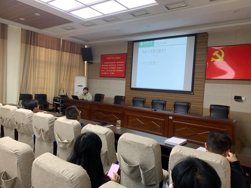 时间:2023-11-25 16:54:40 来源: 作者: 阅读: 次11月25日上午,9001cc金沙杨军义博士于教科301会议室分享英文论文写作与投稿。报告会由我院党委书记房加帅主持,9001cc金沙全体教职工参加了此次报告。
