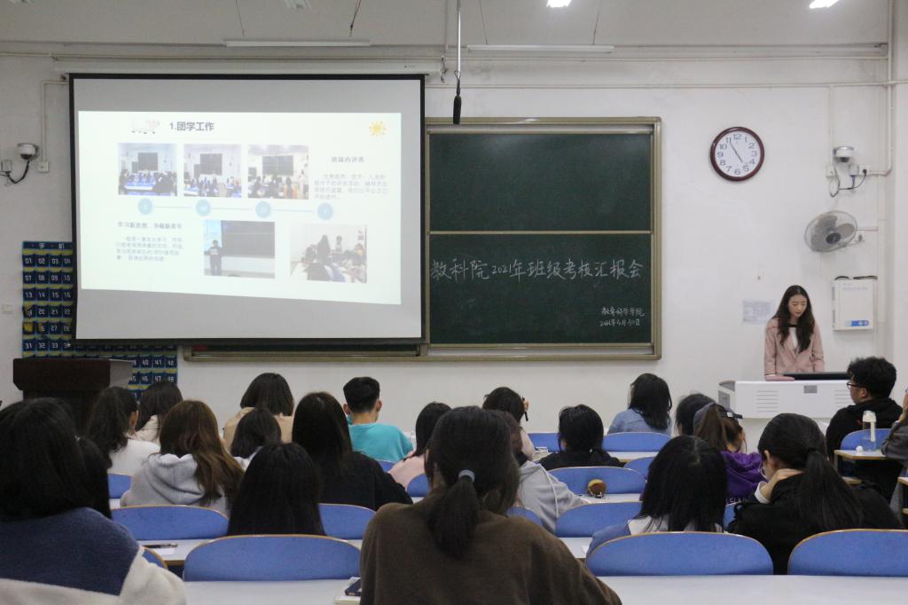 本次班级考核各班主要从班风、学风建设,综合实践等方面对2020年度本班工作进行全面总结,分析存在的不足,并对2021年度的班级建设进行合理的规划,由各班学生组成的评委团从展示形式、展示内容及汇报者变现三个方面进行评价,最终,2018级心理学班荣获本次班级汇报第一名。牛洁楠对本次考核进行总结,她充分肯定各班2020年度的工作,认为各个班级管理都有亮点、有特色、有成效,对推动我院学风建设及团学工作起到了很好的促进作用。同时,她也希望各班能通过此次考评,认真总结经验和不足,互相学习,更好的做好班级管理工作,努力建设优秀班集体。