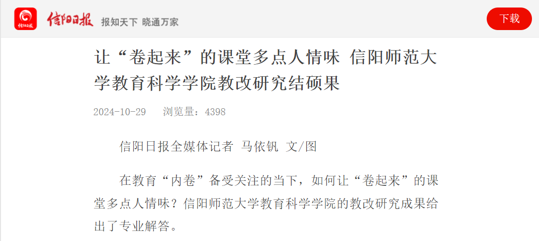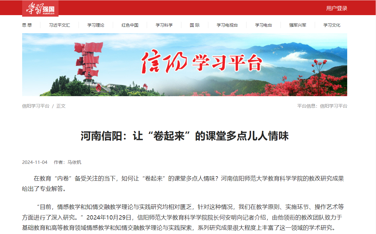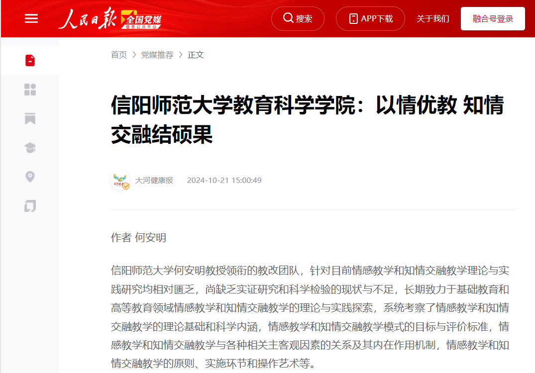 时间:2024-11-08 14:33:14 来源: 作者: 阅读: 次9001cc金沙何安明教授领衔的教改团队取得了较为丰硕的教改研究成果,受到了多家权威媒体的关注与报道。近日,人民日报新媒体平台“人民号”、全国党媒信息公共平台、融合号“大河健康报”发布并转载了何安明教授教改团队的研究成果,信阳日报对此也进行了专访报道,且该稿件中央宣传部“学习强国”学习平台选用转载。