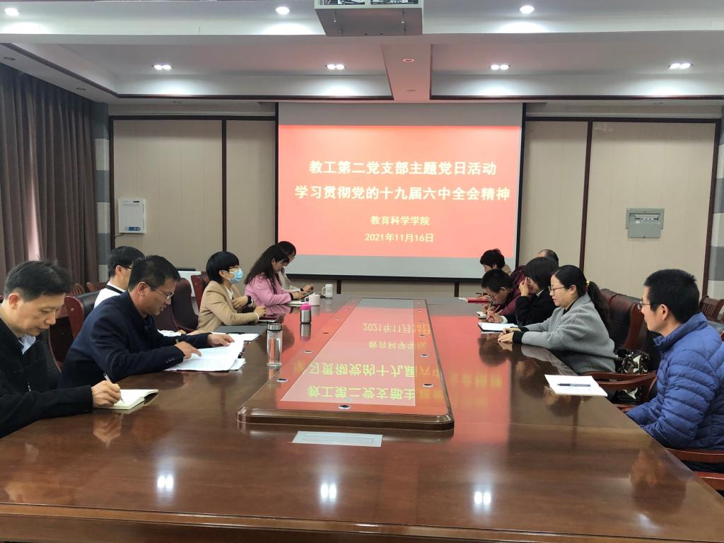 时间:2021-11-18 09:20:28 来源:教科院新闻部 作者:张纪娥 周媛媛 阅读: 次中国共产党第十九届中央委员会第六次全体会议于2021年11月8日至11日在北京举行。连日来,9001cc金沙广大师生密切关注全会盛况,认真研读全会公报和习近平总书记的重要讲话,不断深入学习贯彻党的十九届六中全会精神,学院党委中心组、党支部分别开展全会精神学习研讨活动。
