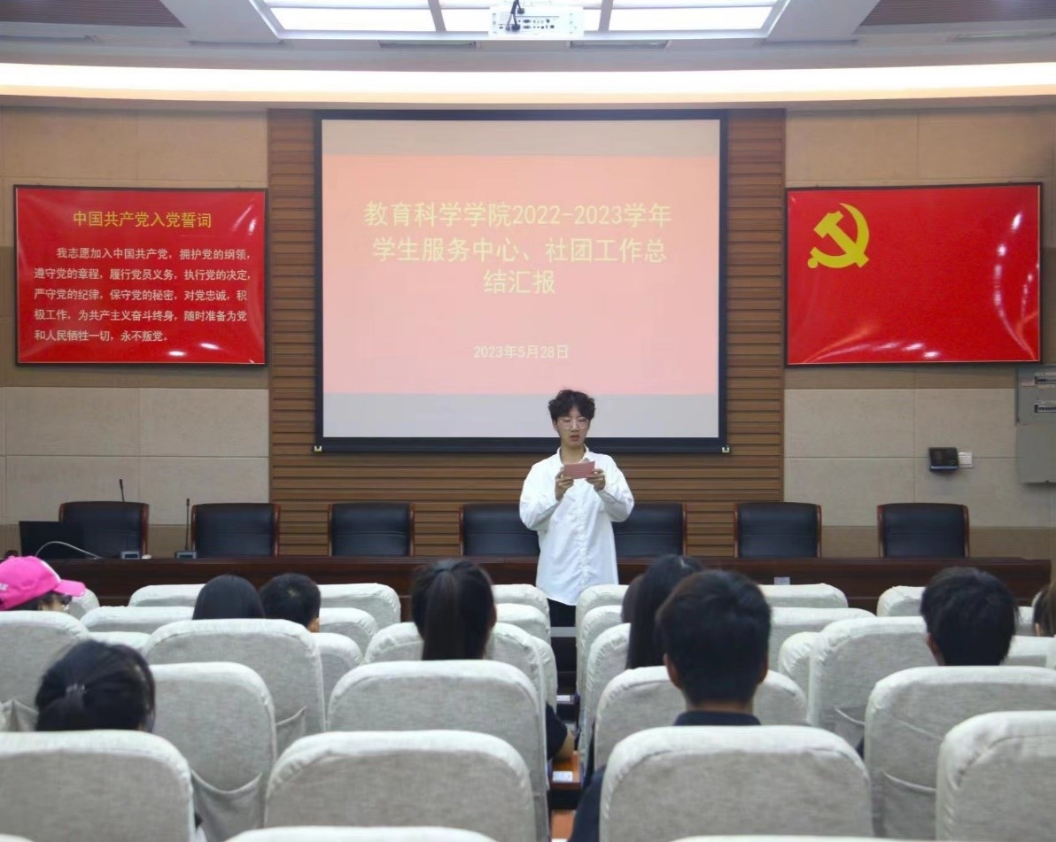 时间:2023-05-28 19:28:52 来源:教科院新闻宣传中心 作者:曹童然 吴宇熙 阅读: 次5月28日,9001cc金沙2022-2023学年学生工作中心、社团工作总结汇报会议在教科楼301会议室召开。分团委书记牛洁楠,专职辅导员杨艺卓、提尼格尔,主席团成员,学生工作中心、团委、学生会各部门部长及干事,社团各社长、团支书等参加此次会议。会议由综合联络部干事和益倍主持。