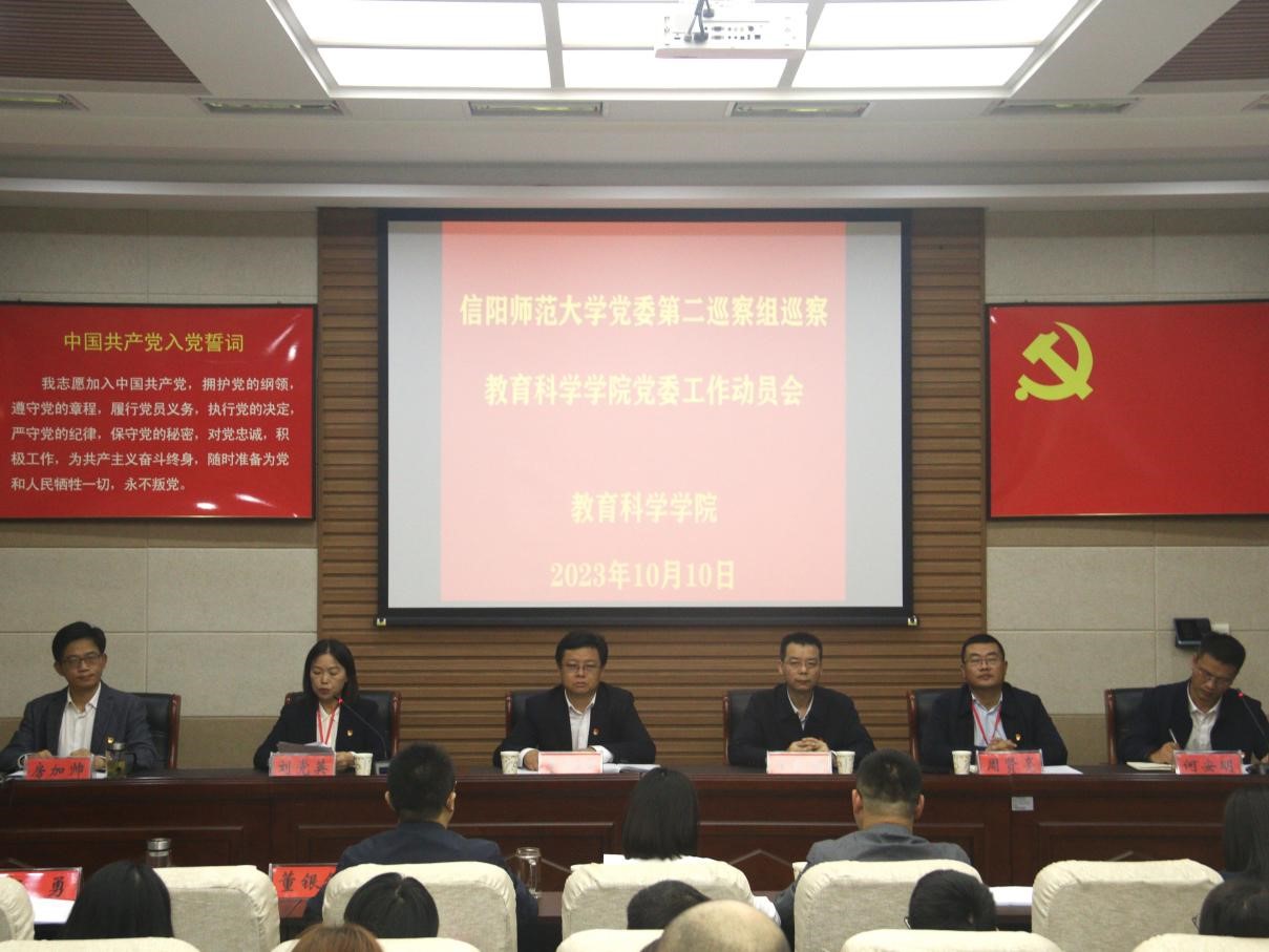 时间:2023-10-10 20:08:47 来源: 作者: 阅读: 次根据学校党委统一部署,10月10日,校党委第二巡察组巡察9001cc金沙党委工作动员会在教科楼301报告厅召开。校纪委书记、监察专员、党委巡察工作领导小组常务副组长李荣胜出席会议并作动员讲话。校党委第二巡察组组长刘党英通报了巡察工作的主要任务、总体安排等;学院党委书记房加帅作表态发言,何安明主持会议。党委巡察办主任王振海、第二巡察组全体成员、学院领导班子成员、全体教职工、离退休教职工代表和学生代表参加。
