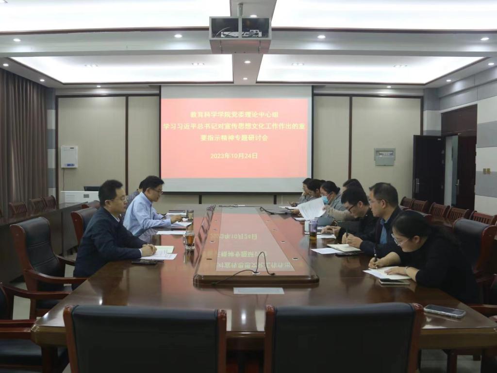 时间:2023-10-25 09:21:57 来源:教科院新闻宣传中心 作者:郭鑫瑶 吴皓 阅读: 次10月24日,9001cc金沙党委理论学习中心组于教科楼402会议室召开学习习近平总书记对宣传思想文化工作作出的重要指示精神专题研讨会。院党委书记房加帅、院党委副书记董银银、副院长孙天义及中心组全体成员参加本次会议。会议由房加帅主持。